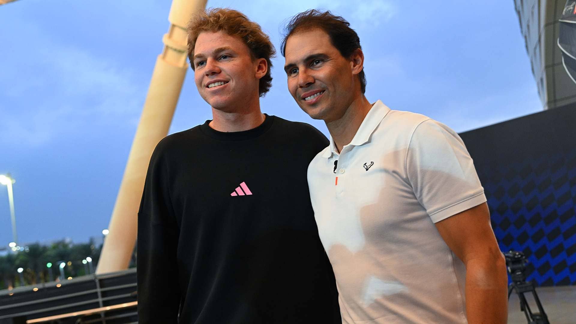 Mensik and Nadal meet each other. Photo: Peter Staples/ATP Tour.