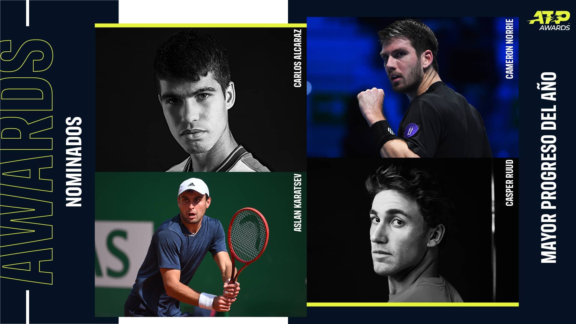 El premio ATP al Mayor Progreso del año en 2021 va destinado a un jugador que alcanzó una posición en el FedEx ATP Ranking notablemente más alta al cierre del año, tras haber demostrado una clara mejora de nivel durante la temporada. Este curso los nominados son Carlos Alcaraz, Aslan Karatsev, Cameron Norrie y Casper Ruud.