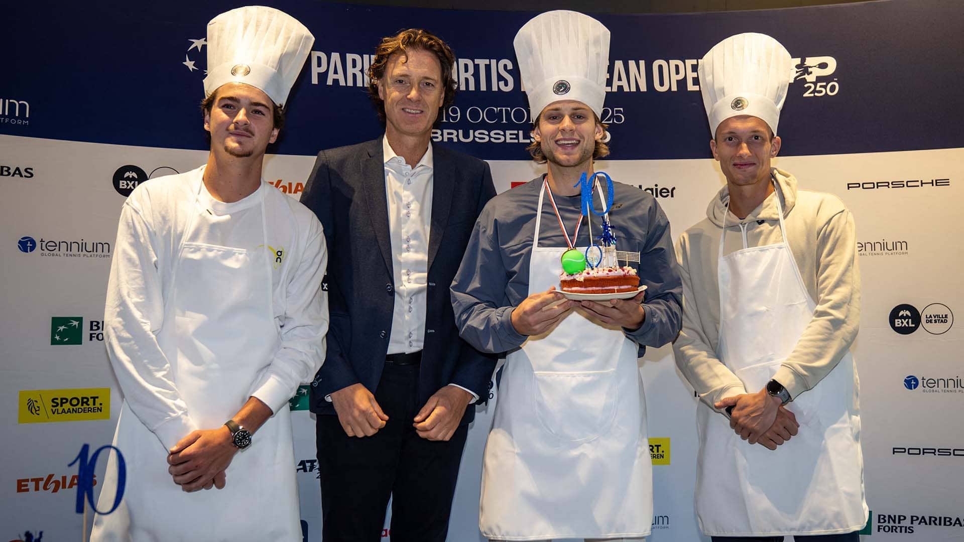El #NextGenATP brasileño Joao Fonseca, el favorito local Zizou Bergs y el Top 20 checo Jiri Lehecka afrontaron una tarea especial durante el día de atención a medios en Bruselas: decorar una tarta para conmemorar el 10º aniversario del ATP 250 de pista cubierta.